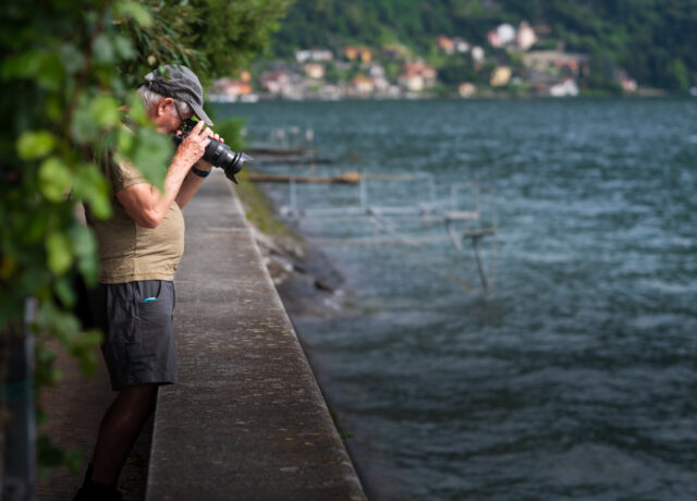 Ruth at the edge of Lake ComoDon lining up a shot on Lake ComoNancy in a church in MenaggioDonna resting in the garden in BellagioDon working the lilliesRuth in VarennaNancy in VarennaWorking separately togetherIn VarennaWorkshoppers dwarfed by the waterfallEric photographs a tiny alpine villageDon gets his settings rightMichelle in SwitzerlandRuth in Isola dei PescatoriLunch on Lago Maggiore